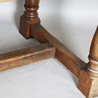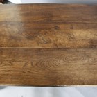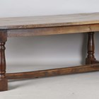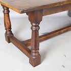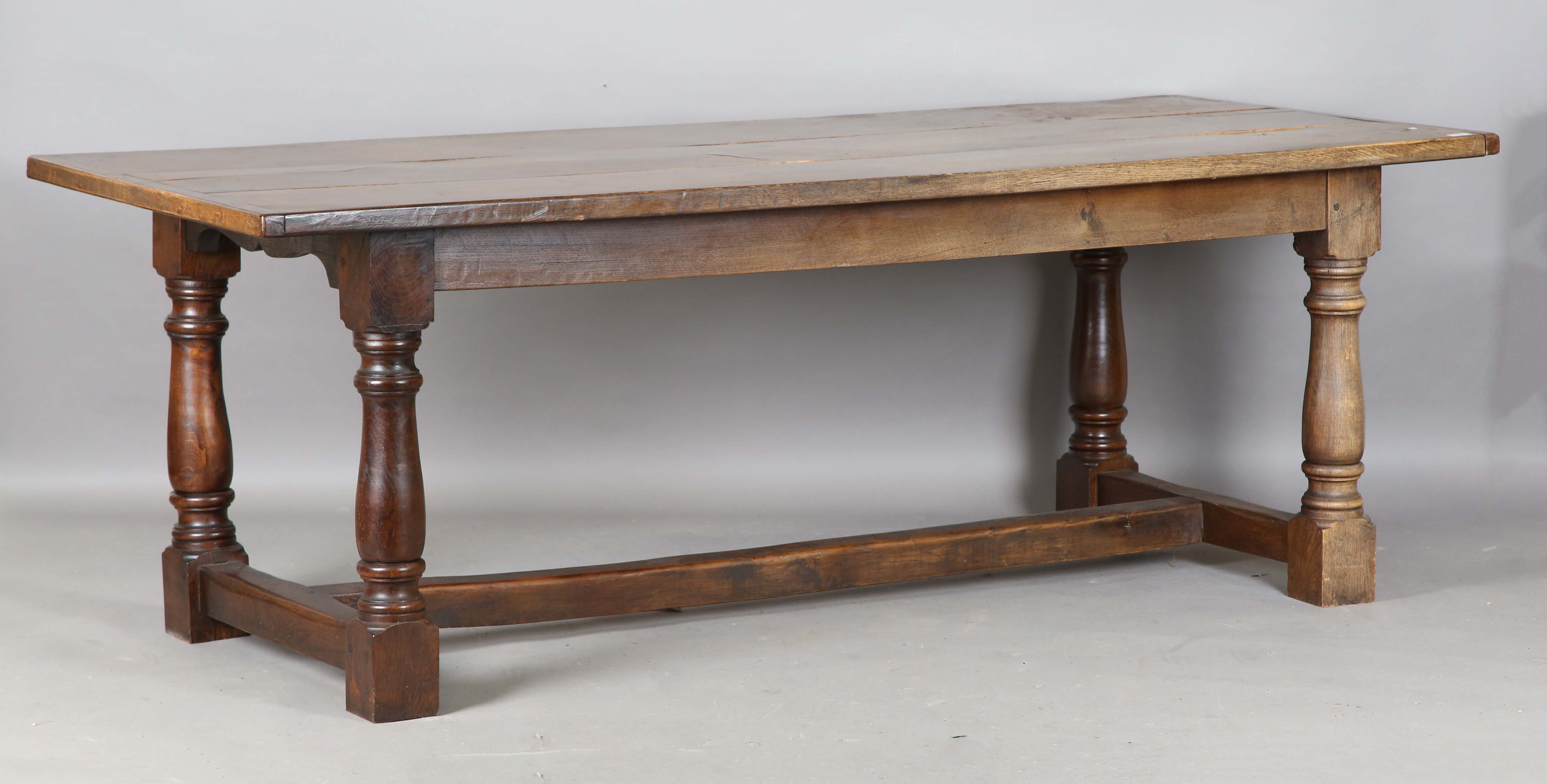A late 20th century oak refectory style dining table with a thick three-plank top, height 76cm, length 217cm, depth 89cm.