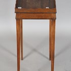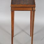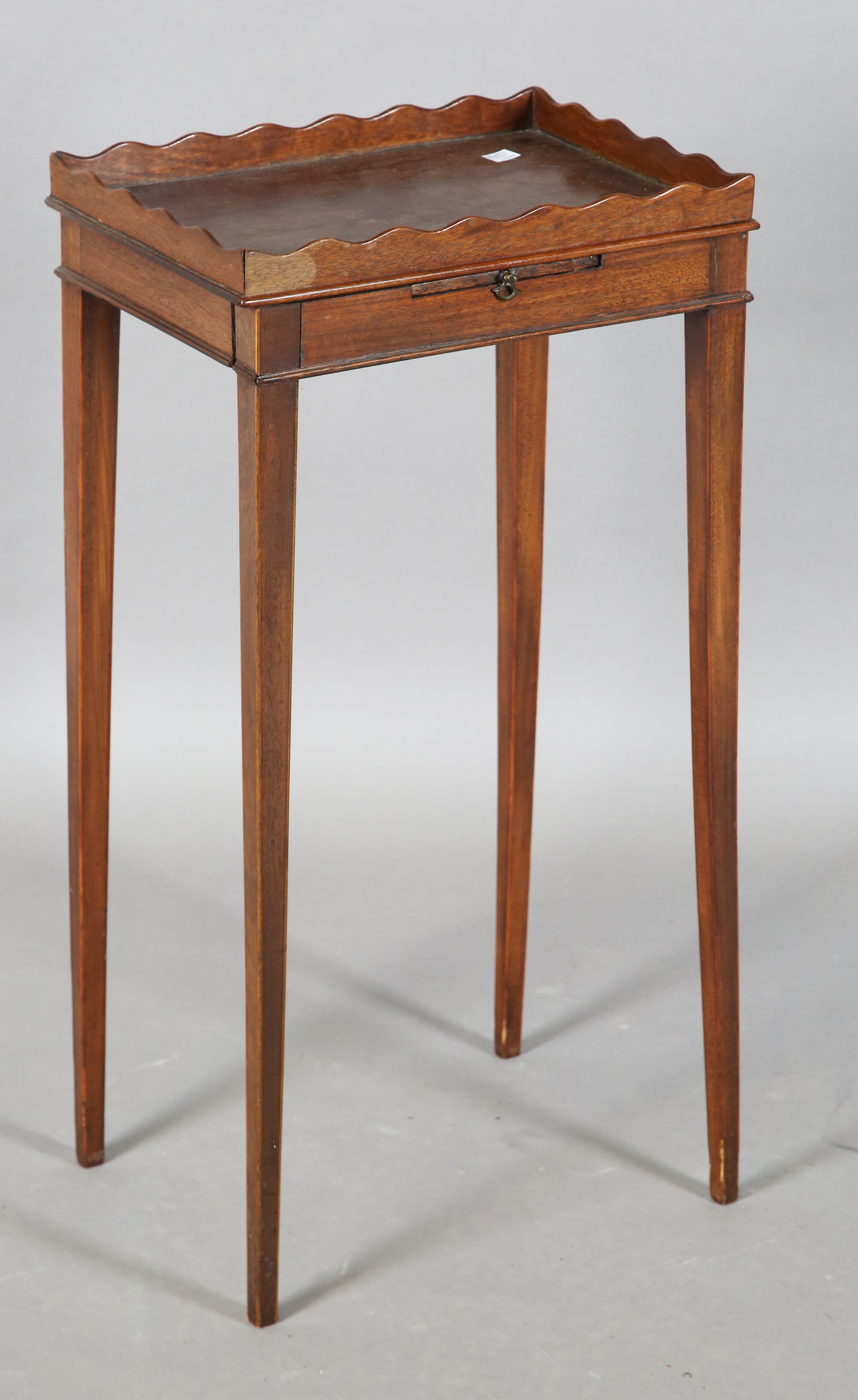 A George III mahogany kettle stand with a gallery top and slide, height 67cm, width 34cm, depth 25cm (faults).