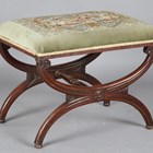 A Regency mahogany ‘X’ frame stool, height 44cm, width 54cm, depth 39cm.