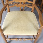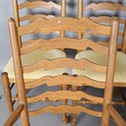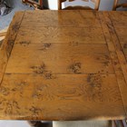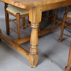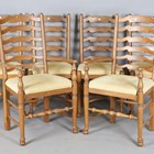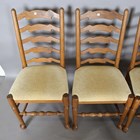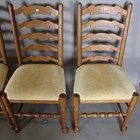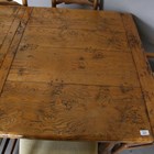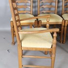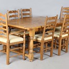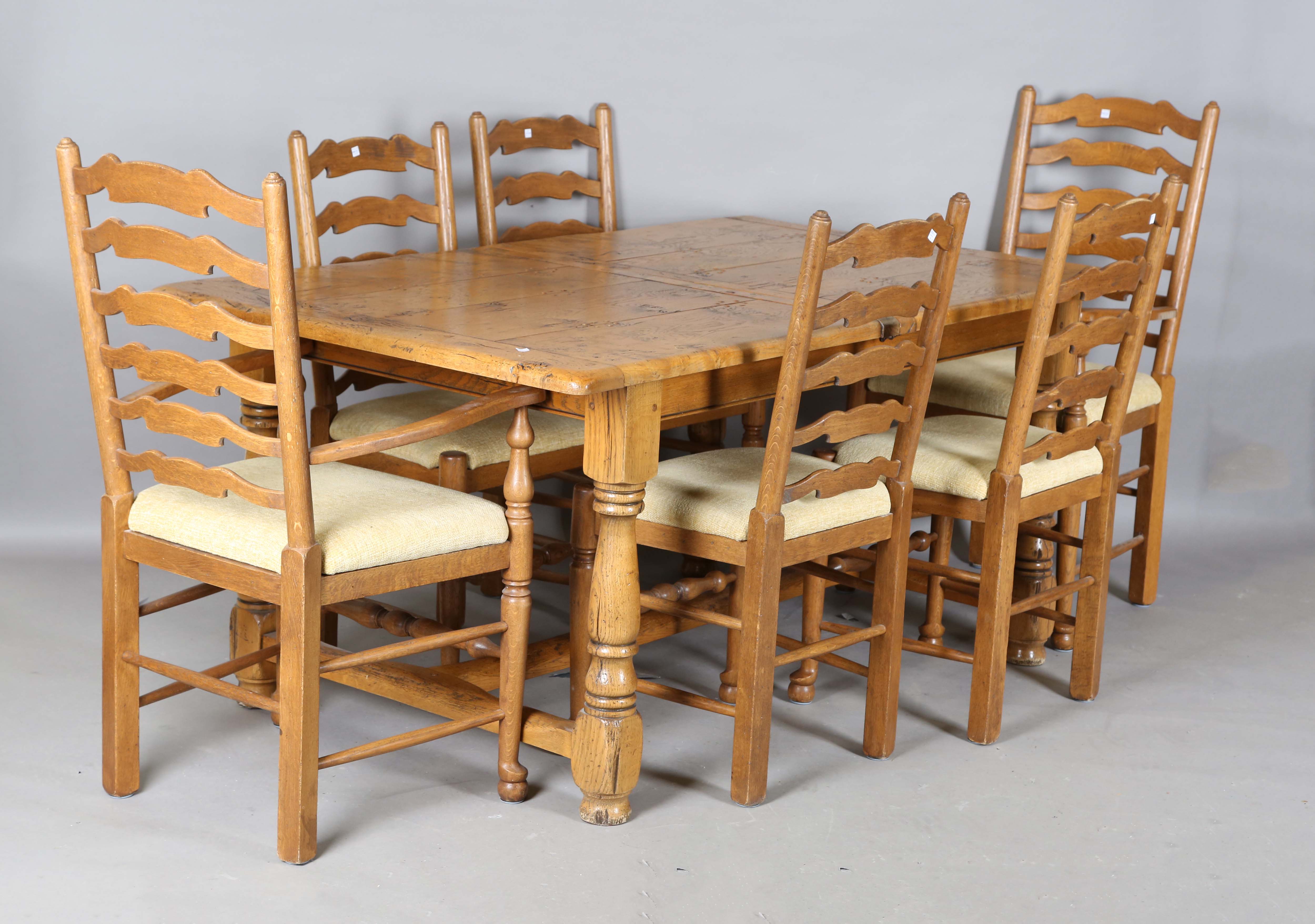 A modern solid oak refectory dining table, the peg-jointed top with a single extra leaf, height 77cm, length 167cm, extended length 227cm, depth 99cm, together with a set of six matching ladder back dining chairs.