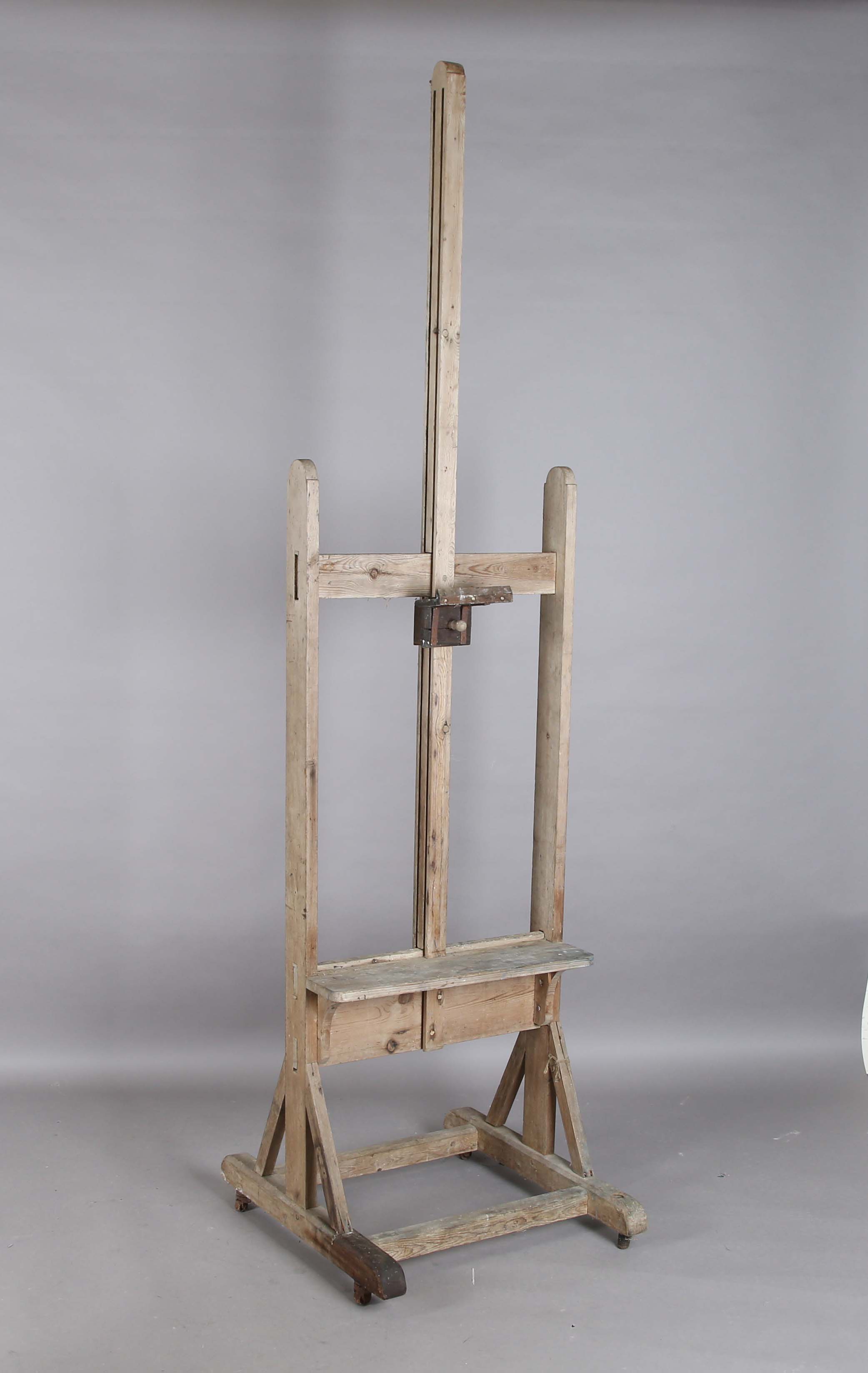An early 20th century pine framed artist's easel, height 237cm, width 63cm, depth 69cm.