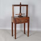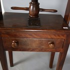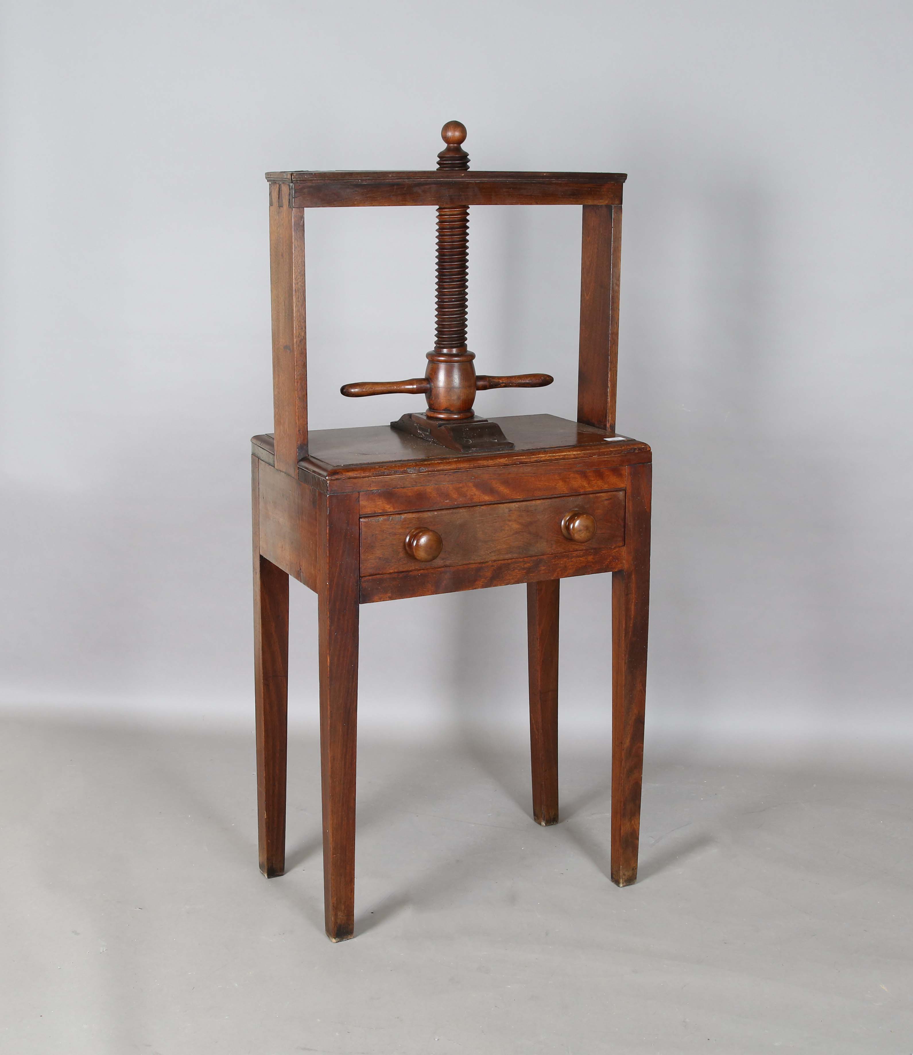 An early Victorian provincial walnut bookpress with a large winding handle above a base with single drawer, height 140cm, width 66cm, depth 38cm.