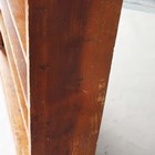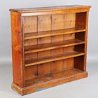 A Victorian pitch pine open bookcase, height 120cm, width 130cm, depth 33cm.