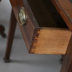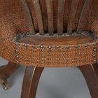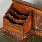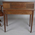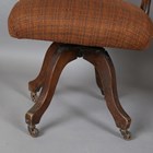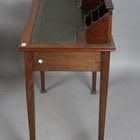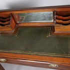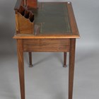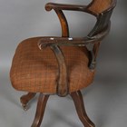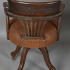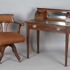 An early 20th century mahogany writing table with a green leather inset top, height 98cm, width 92cm, depth 51cm, together with an early 20th century revolving desk chair, height 86cm, width 62cm.
