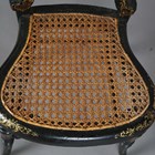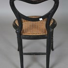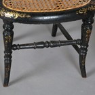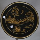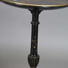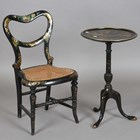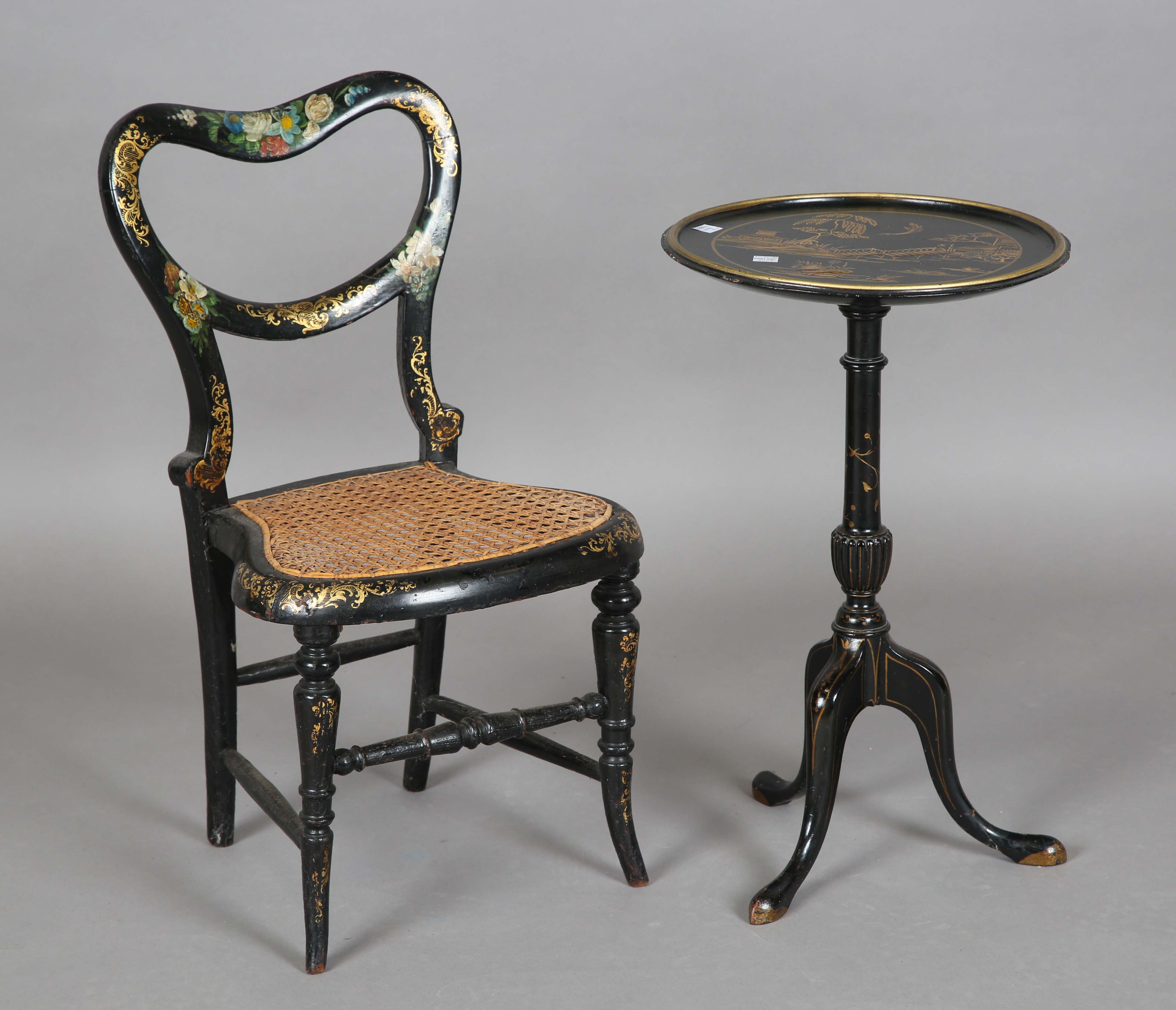 A Victorian papier-mâché child's chair with gilt decoration, height 59cm, width 32cm, together with an early 20th century chinoiserie wine table, height 50cm, diameter 30cm.
