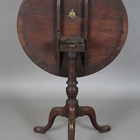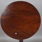 A George III mahogany circular tip-top table, on a turned baluster column and tripod cabriole legs, height 73cm, diameter 69cm.