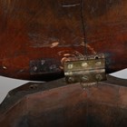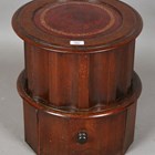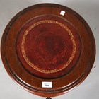 A Victorian mahogany circular library step, converted from a commode stool, inset with gilt-tooled leather, height 43cm, width 39cm.