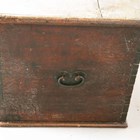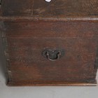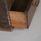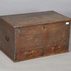 A George III provincial oak trunk, the hinged lid above two frieze drawers, height 41cm, width 72cm, depth 41cm.