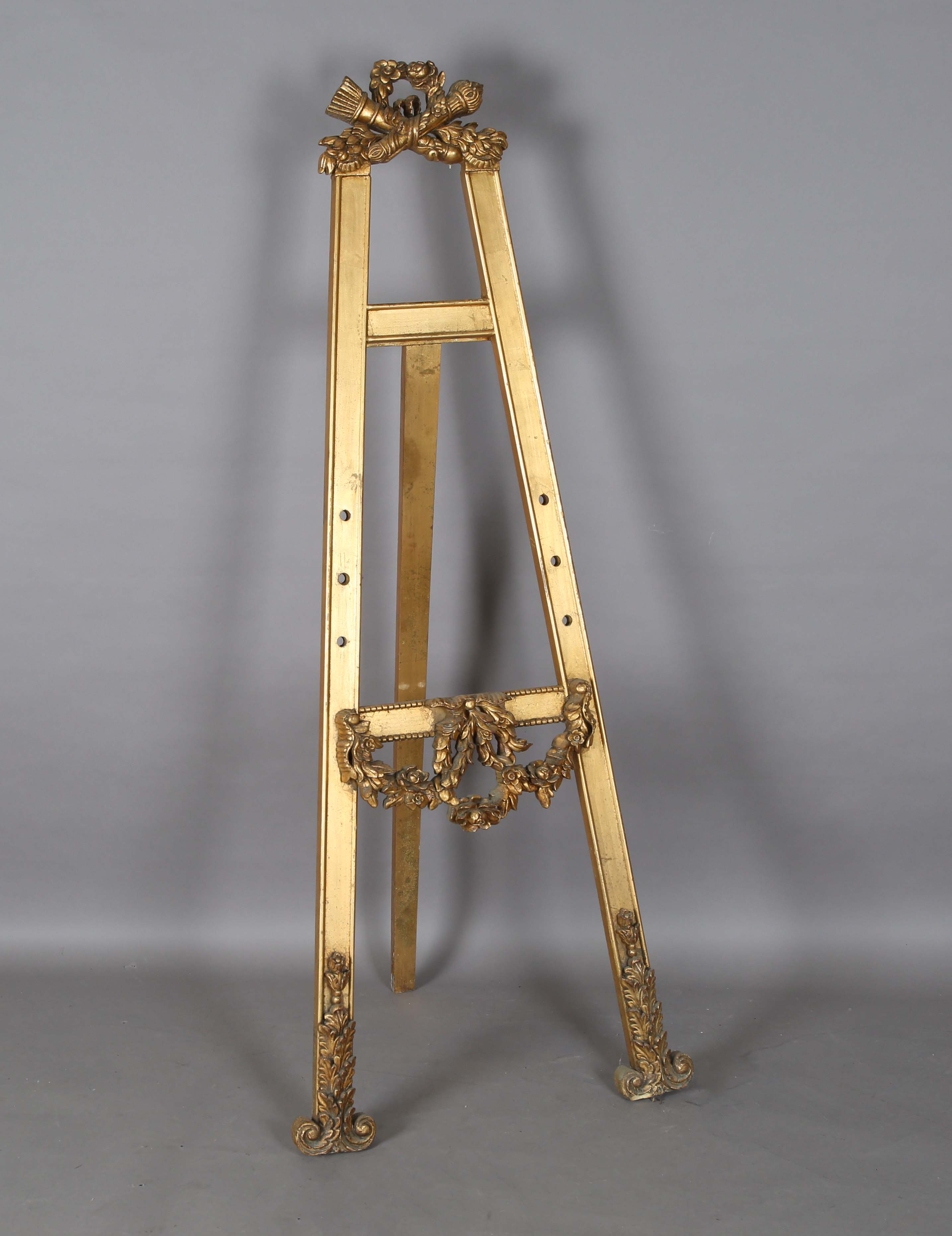 A late 20th century carved giltwood easel, height 166cm, width 70cm.