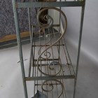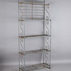 A 20th century grey painted wrought metal five-tier baker's rack, height 216cm, width 94cm, depth 37cm.