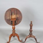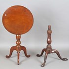A George III mahogany tripod wine table base, height 68cm, together with a Victorian mahogany tip-top wine table, height 76cm, diameter 57cm.