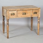 A 19th century primitive pine side table, fitted with three frieze drawers, height 72cm, width 86cm, depth 49cm.