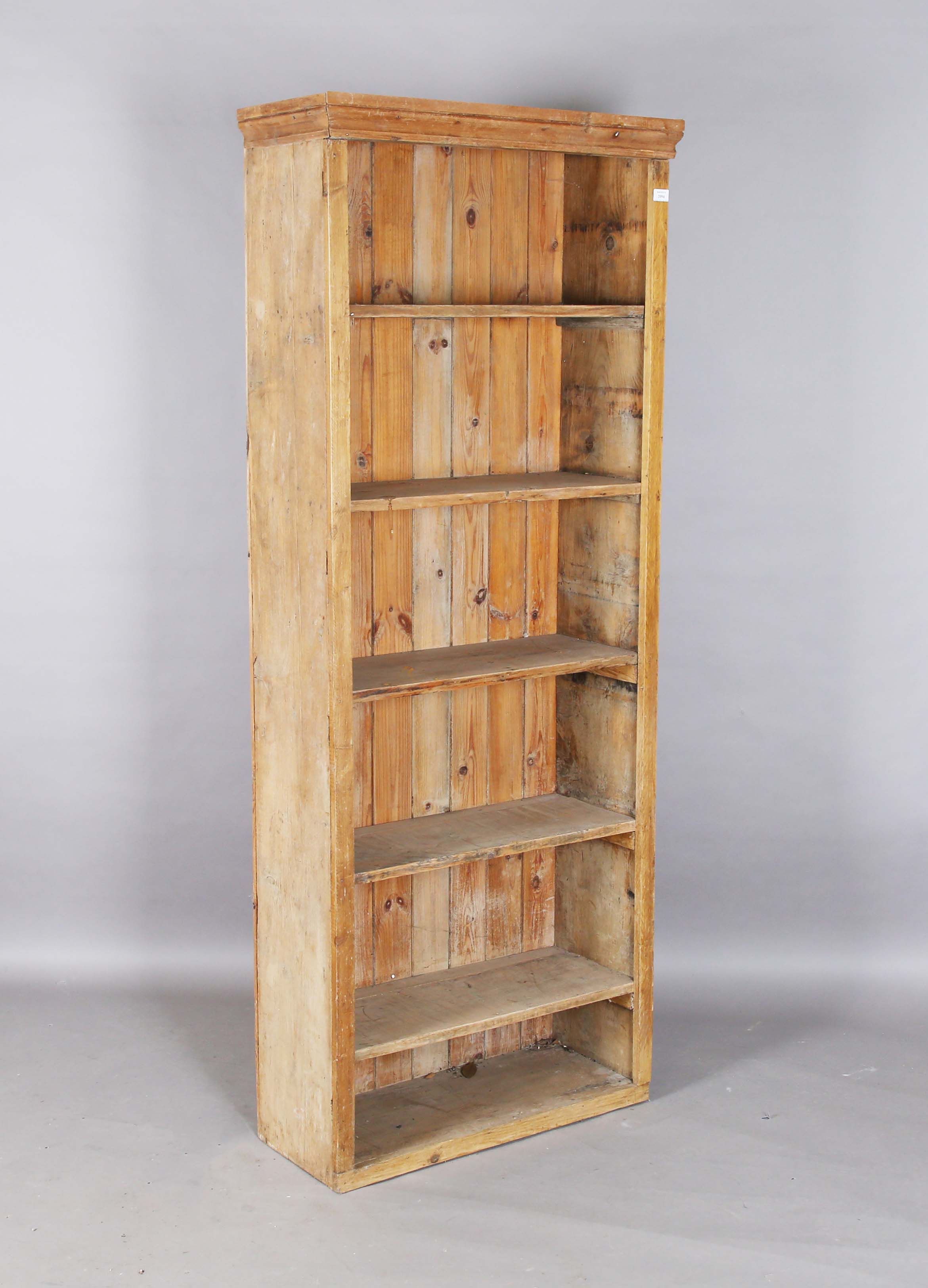 A 20th century rustic pine open bookcase, height 192cm, width 77cm, depth 31cm.