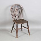 A mid-Victorian ash and elm draught and spindle back kitchen chair, height 89cm, width 45cm, depth 45cm.