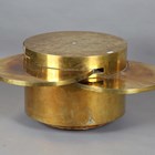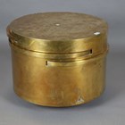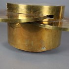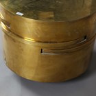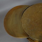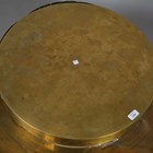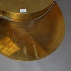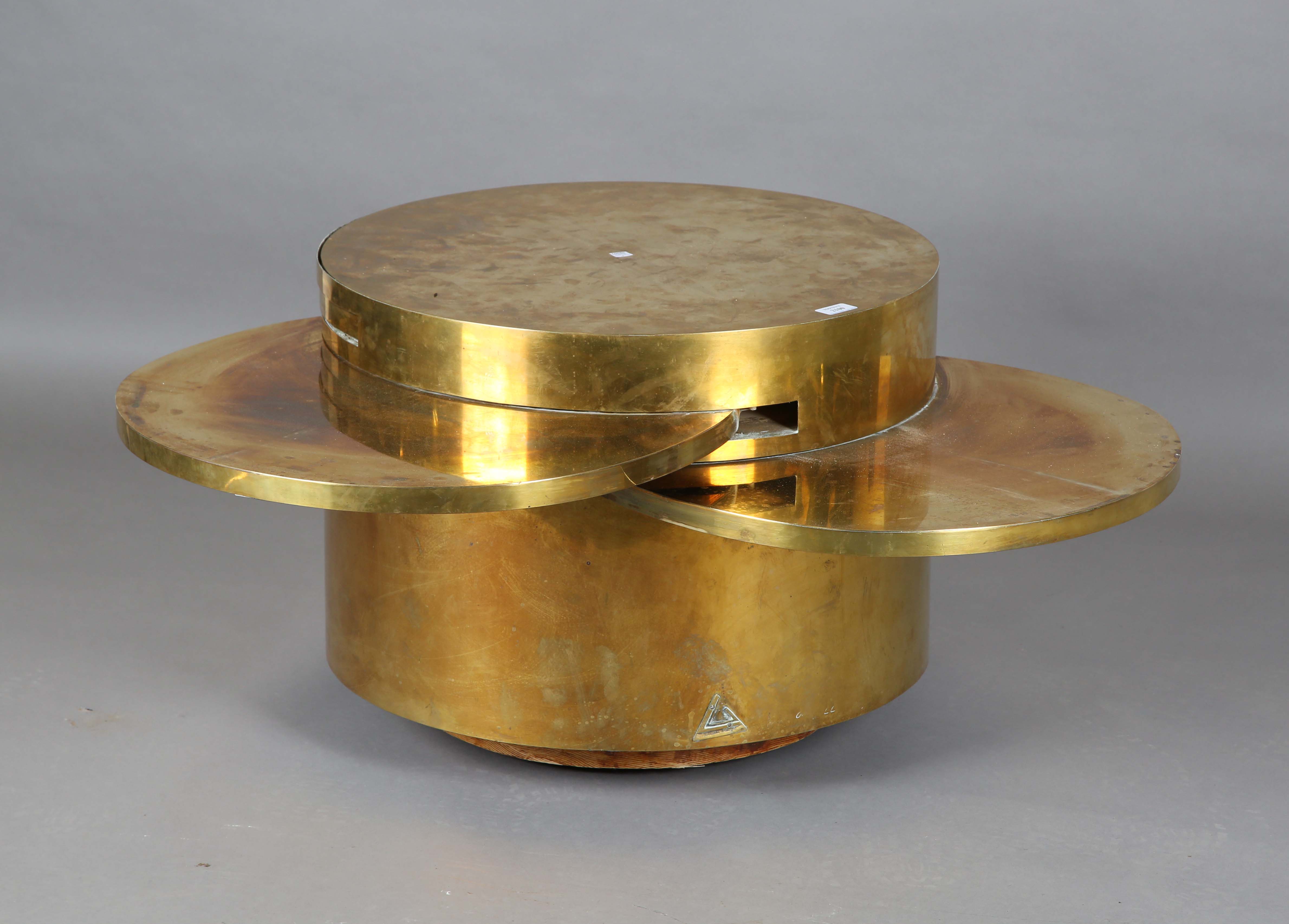 A scarce mid-20th century Italian brass circular coffee table, designed by Gabriella Crespi, the sides with four pull-out slides, bearing maker's mark to side, height 46.5cm, diameter 59.5cm (faults).
