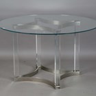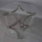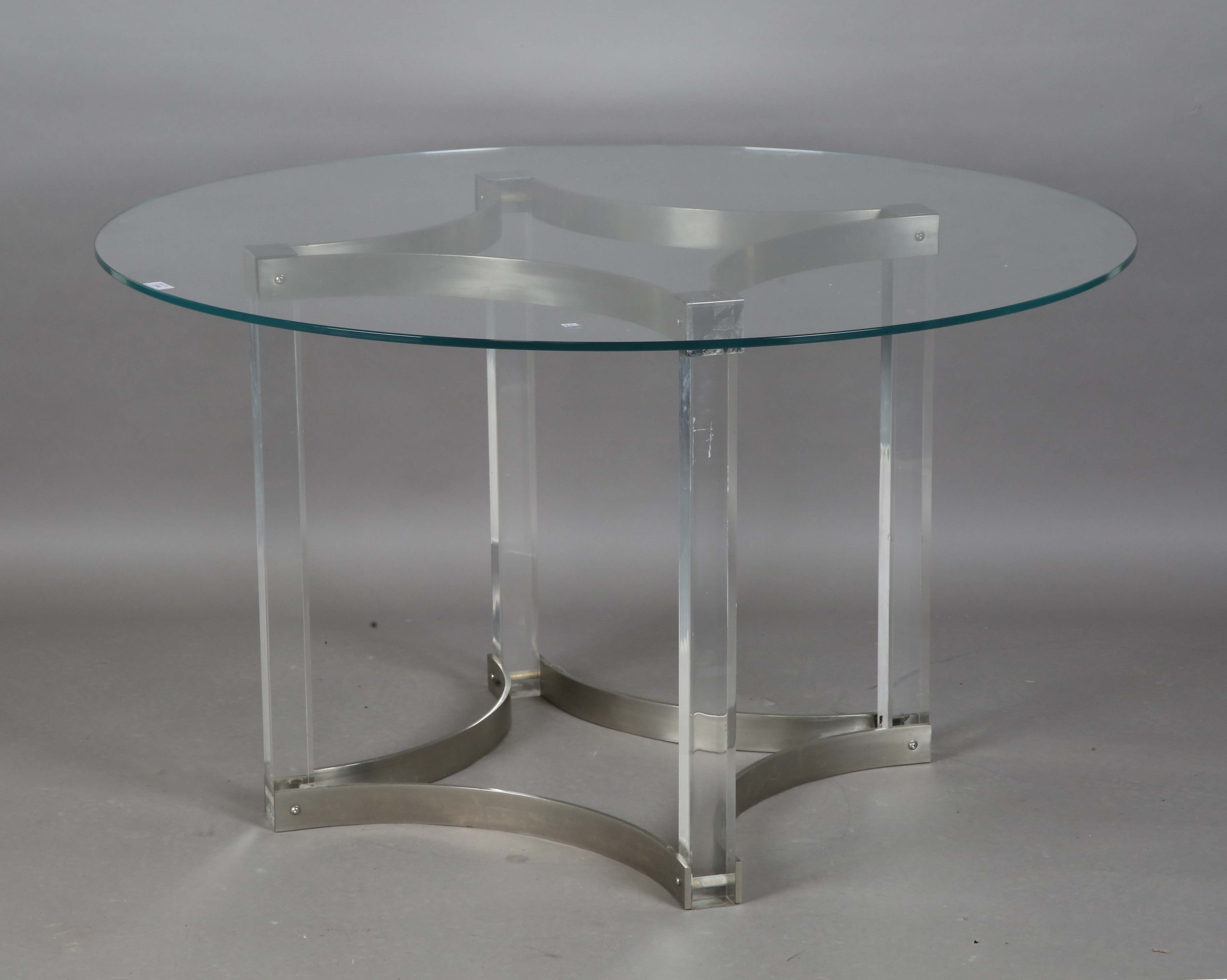A mid-20th century Italian glass, perspex and brushed metal circular dining table by Alesandro Albrizzi, height 71cm, diameter 122cm.