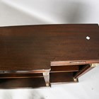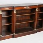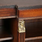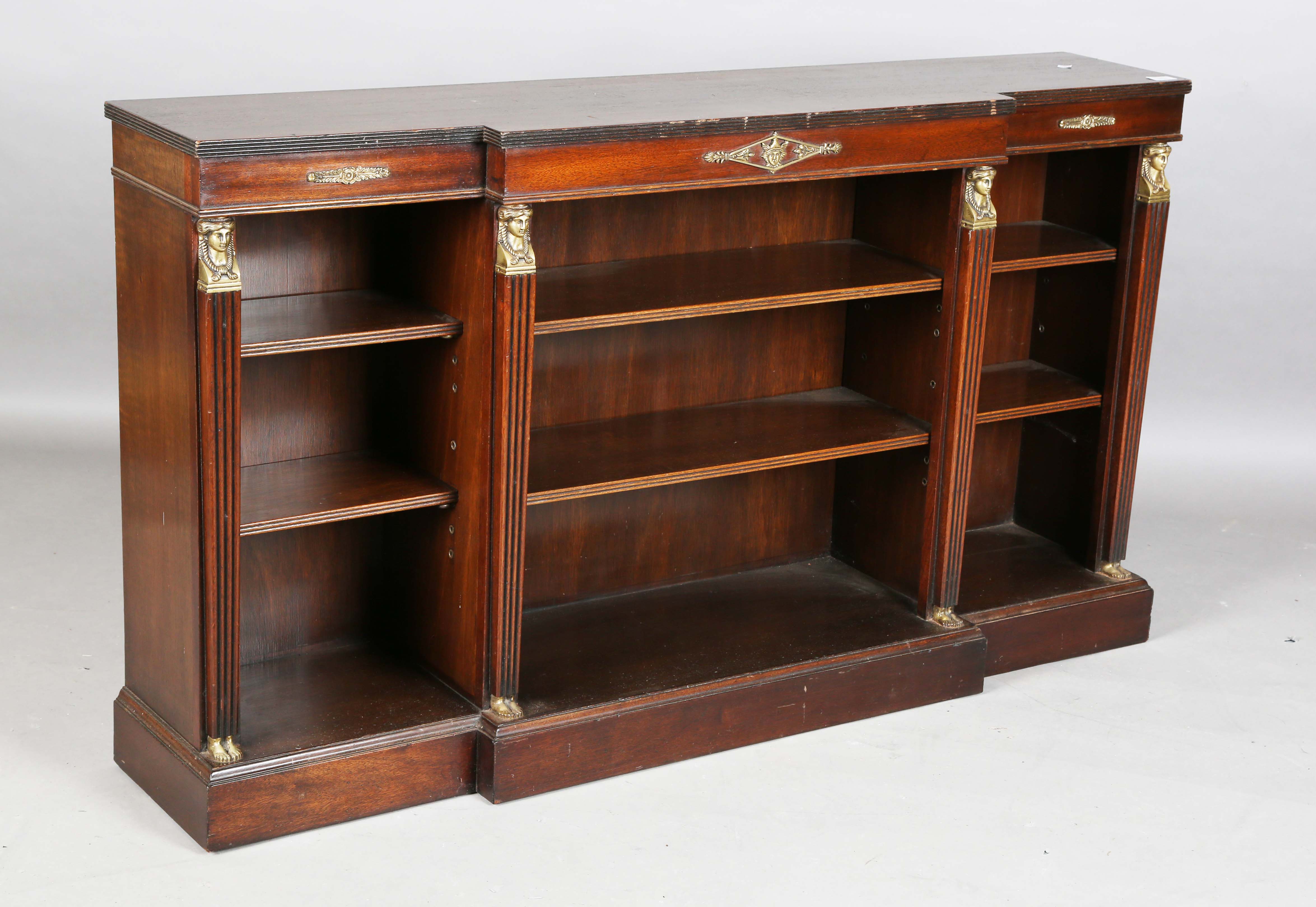 A late 20th century Empire style mahogany breakfront open bookcase with cast brass mounted pharaSaveoh headed pilasters, height 79cm, width 139cm, depth 30cm.