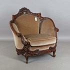 A late 20th century Continental rococo style carved showframe armchair, height 94cm, width 90cm, depth 87cm.
