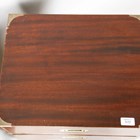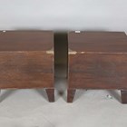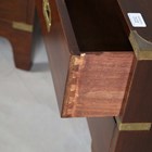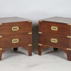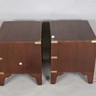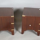 A pair of late 20th century mahogany and brass mounted campaign style bedside chests, height 43.5cm, width 45.5cm, depth 38cm.