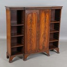 An early 20th century Neoclassical Revival mahogany breakfront bookcase, the reeded frieze above two doors flanked by open shelves, height 107cm, width 118cm, depth 30cm.