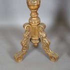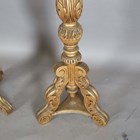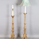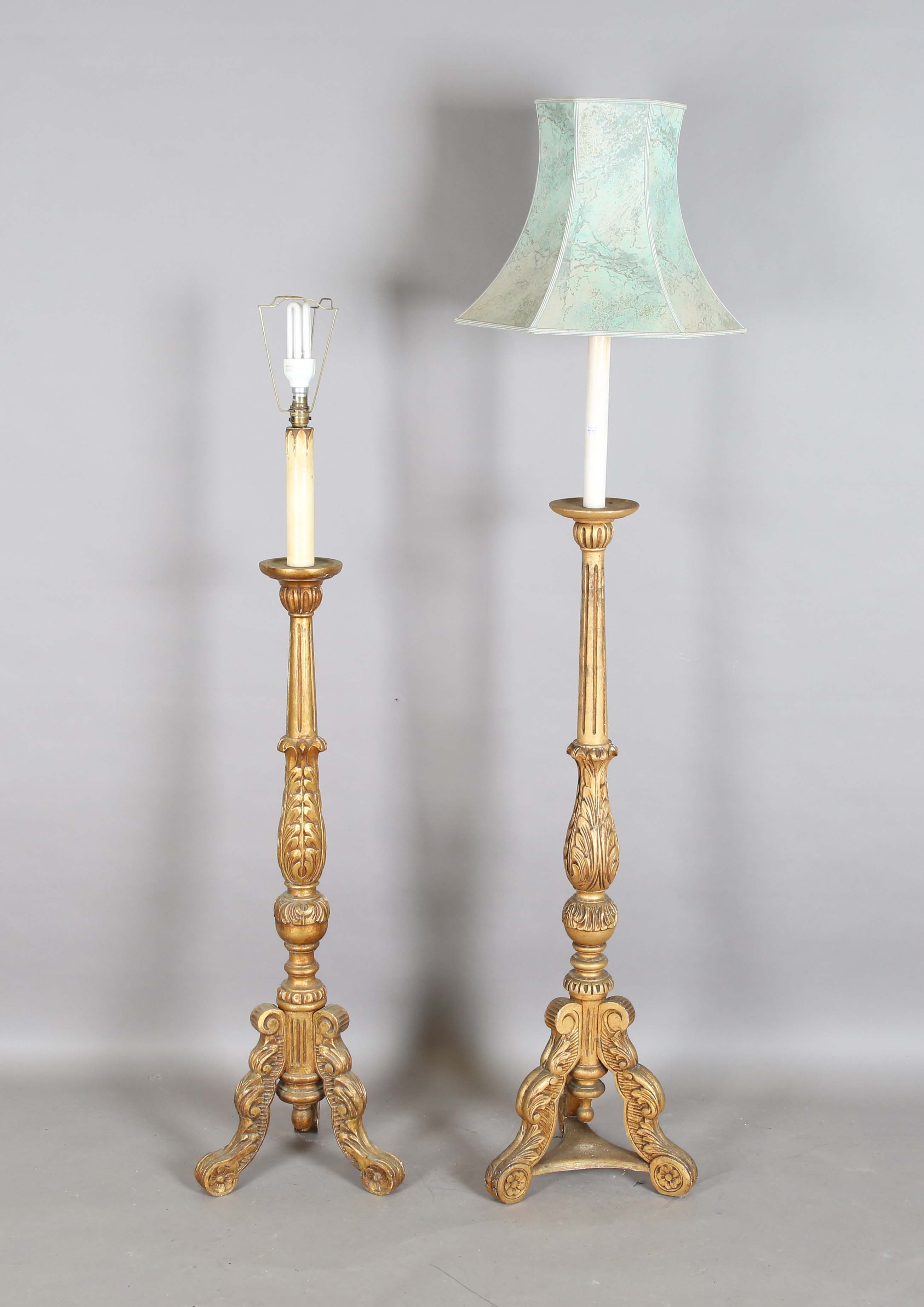 A near pair of mid-20th century French giltwood lamp standards, both raised on tripod legs, heights 148cm and 132cm.