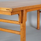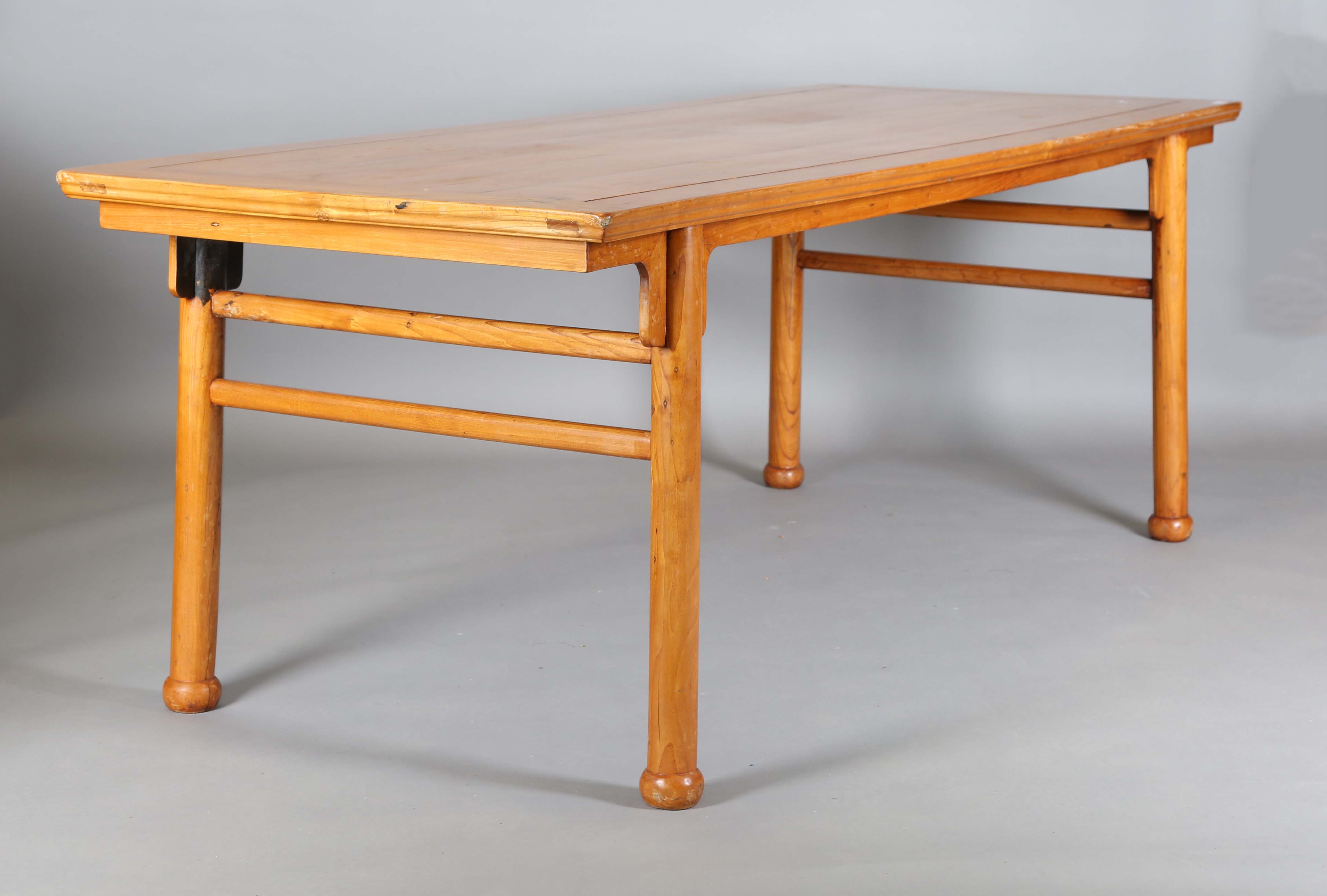 A Chinese elm rectangular serving table, raised on turned legs, height 80cm, length 226cm, depth 90cm.