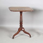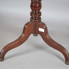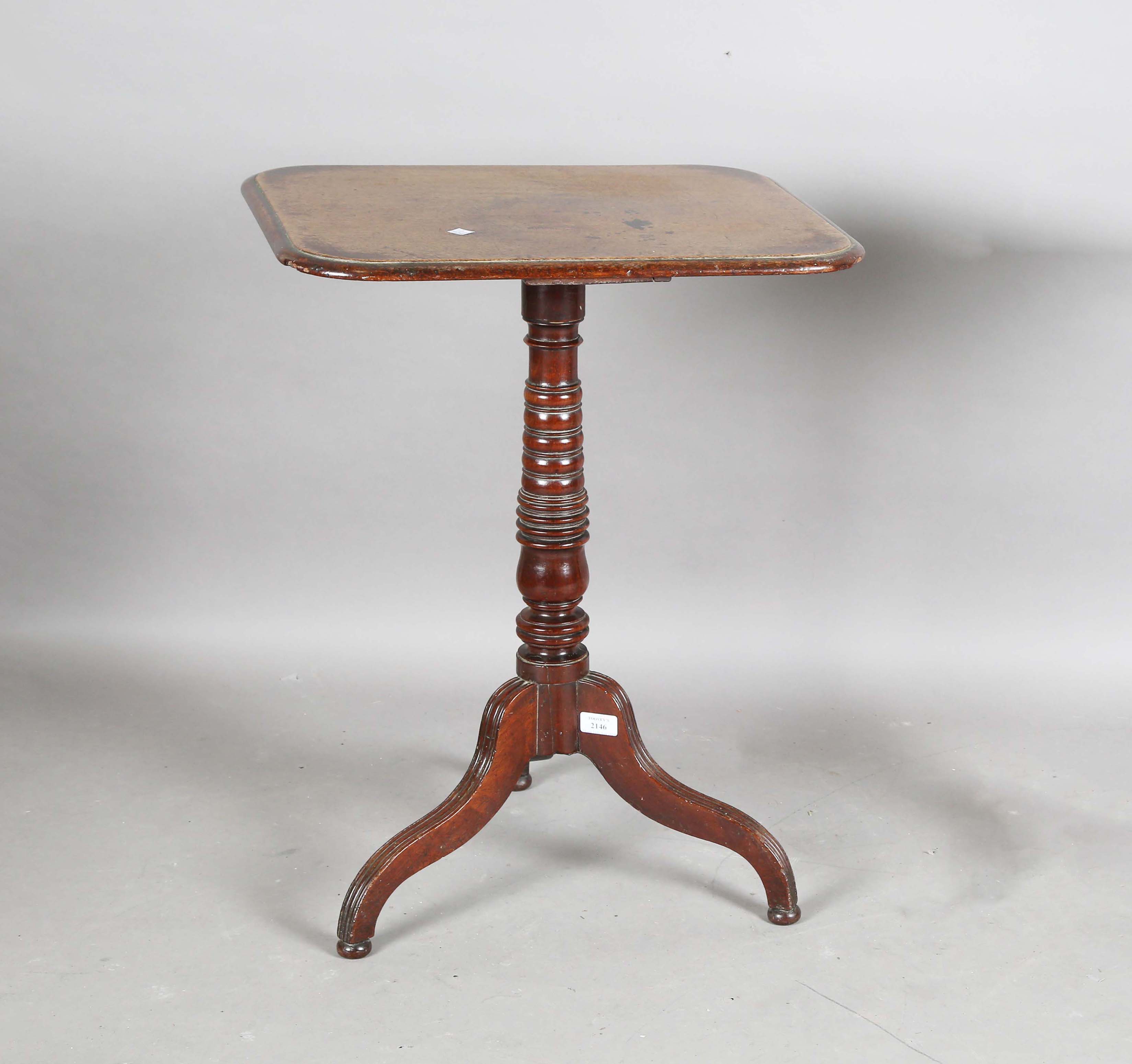 An early Victorian mahogany wine table, the rectangular top above a turned stem and tripod legs, height 69cm, width 53cm, depth 43cm.