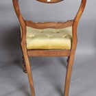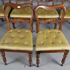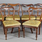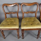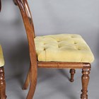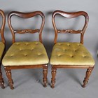 A set of six mid-Victorian mahogany spoon back dining chairs with carved centre rails and turned legs, height 86cm, width 46cm, depth 50cm.