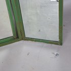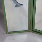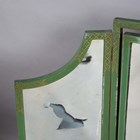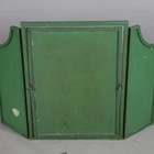 An early 20th century green painted triptych dressing table mirror, height 88cm, width 133cm.