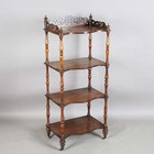 A Victorian rosewood four-tier whatnot with a pierced fretwork gallery and turned supports, height 119cm, width 50cm, depth 34cm.