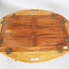 A 19th century flame mahogany folding butler's tray with pierced handles and brass hinges, width 95cm, depth 74cm, raised on a later 'X' frame stand.