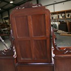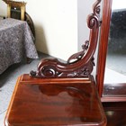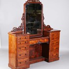 A fine mid-Victorian mahogany Duchess dressing table by Holden & Co, Liverpool, the central swing mirror on carved scroll supports above an arrangement of eleven drawers, one drawer with stamped maker's mark, height 180cm, width 156cm, depth 41cm.