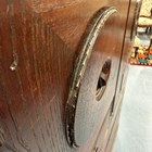 An Edwardian Arts and Crafts Heal & Sons chestnut 'Owl' cabinet, designed by Sir Ambrose Heal in 1905-06, fitted with a pair of cupboard doors with applied circular panels centred by rotating latch handles, the drawers with recessed 'squashed heart' handles, height 151cm, width 110cm, depth 52cm (faults). Note: a similar cabinet can be seen in 'Sir Ambrose Heal and the Heal Cabinet Factory 1897-1939' by Oliver S. Heal, page 179.