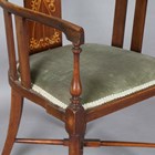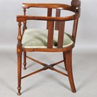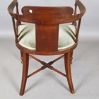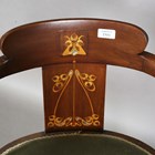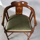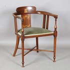 An Edwardian Art Nouveau mahogany tub back side chair, the back finely inlaid with a stylized plant in boxwood and abalone, height 72cm, width 54cm, depth 49cm.