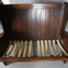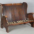 An early 20th century Arts and Crafts ash and elm settee with winged peg-jointed sides, height 103cm, width 137cm, depth 80cm.