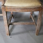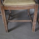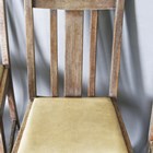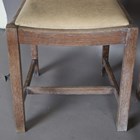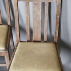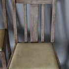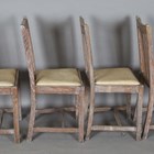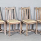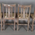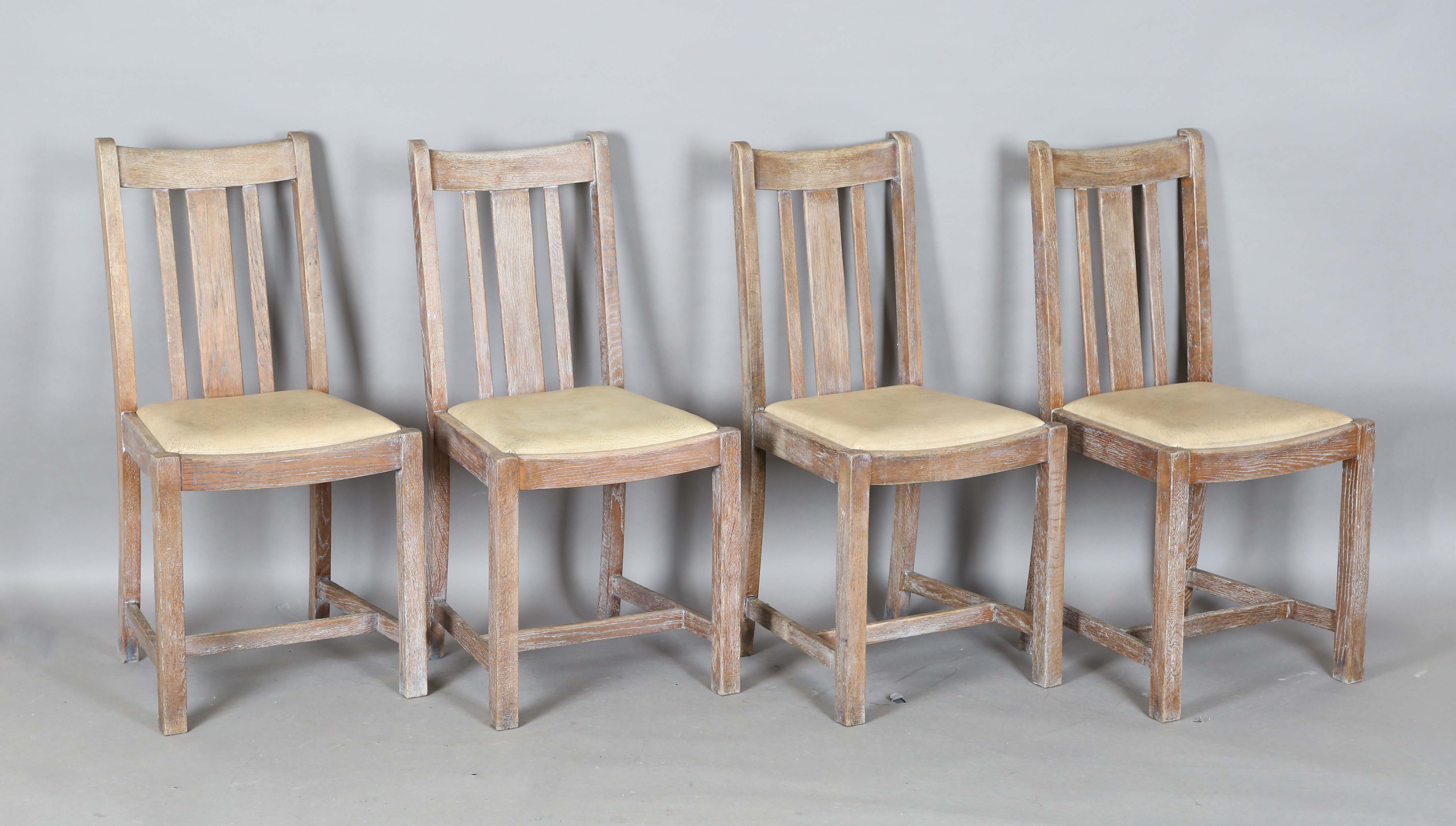 A set of four early/mid-20th century lined oak rail back dining chairs by Heals, all bearing Ivonex maker's labels to seal rails. height 90cm, width 44cm.