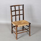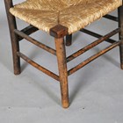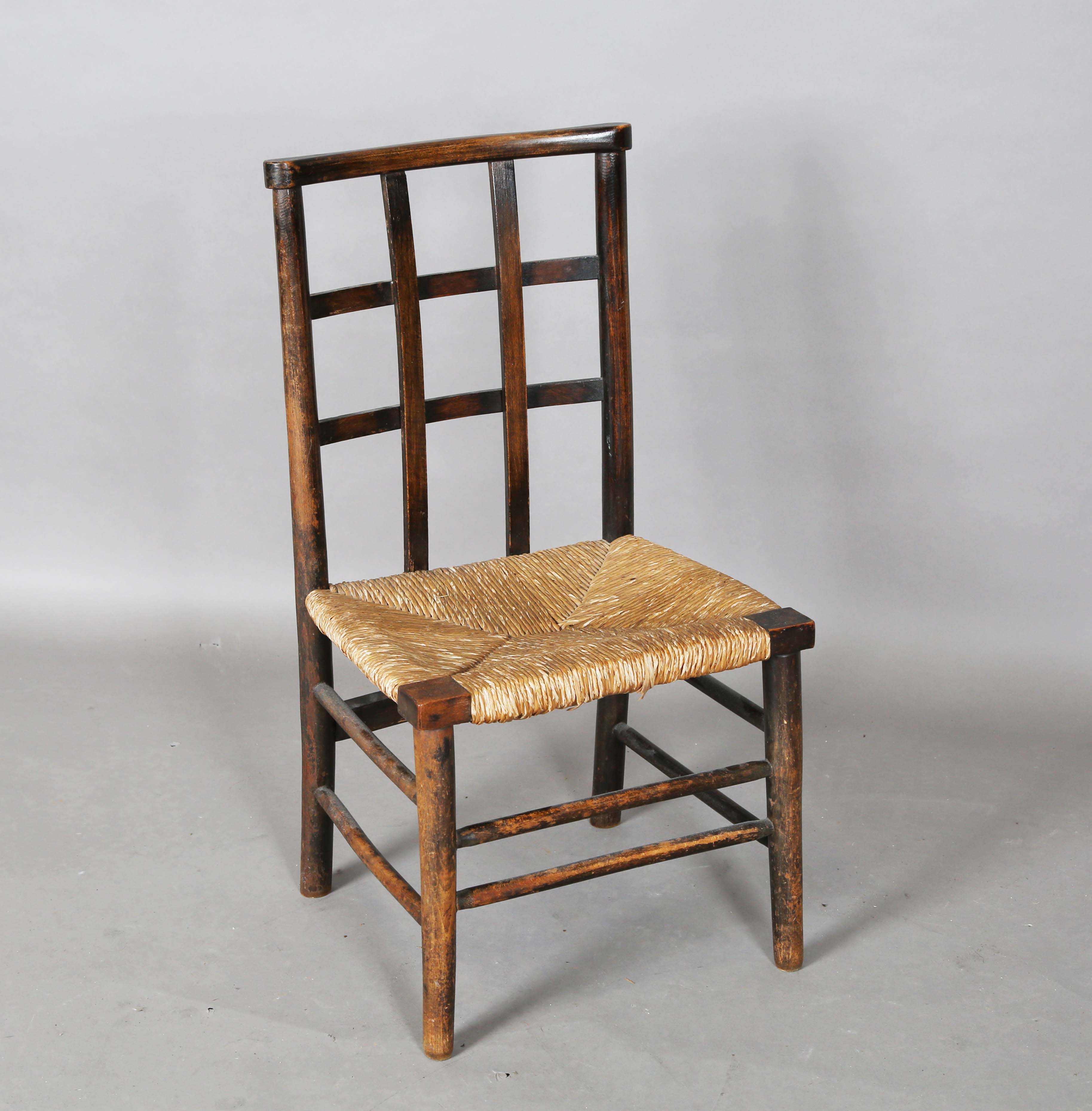 An early 20th century Arts and Crafts stained beech child's chair with woven rush seat, height 66cm, width 35cm, depth 30cm.