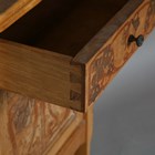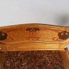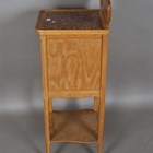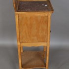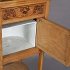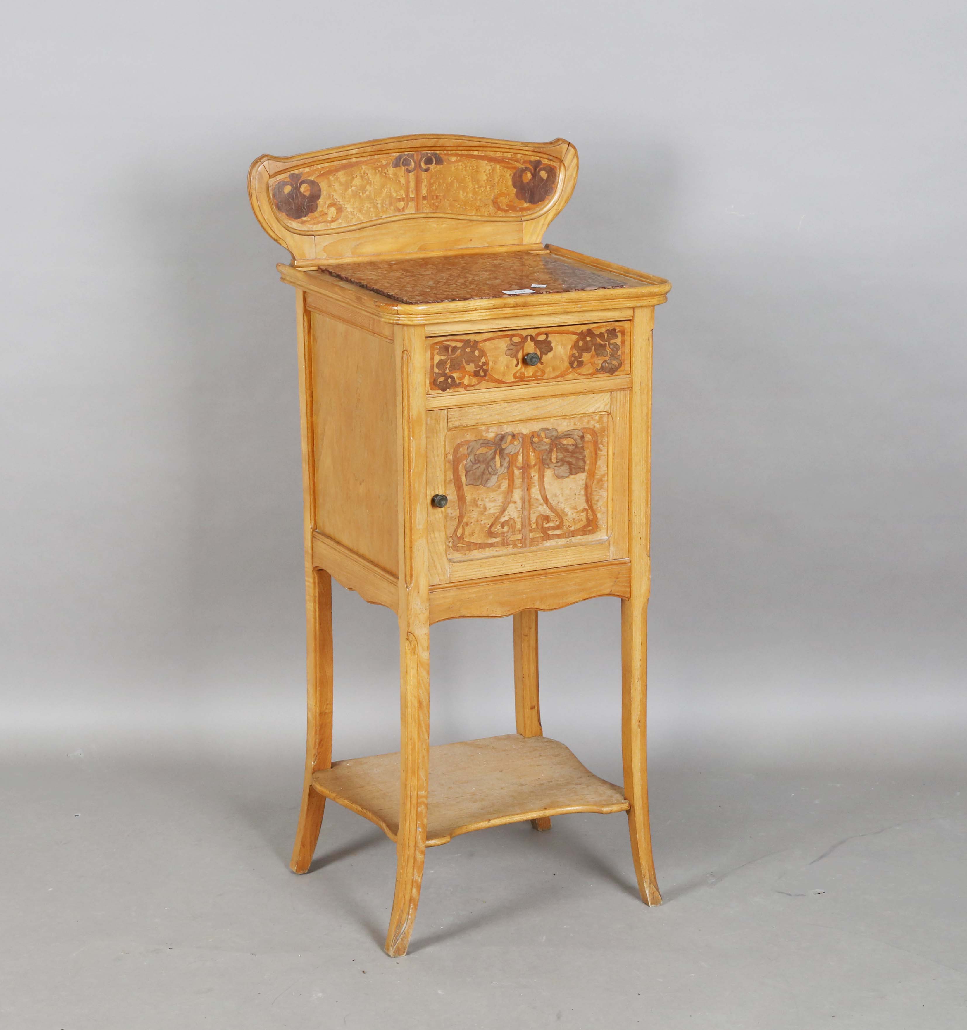 A French Art Nouveau ash bedside cabinet, in the manner of Emile Gallé, the raised back and front inlaid with stylized plants and vine, height 101cm, width 48cm, depth 38cm.