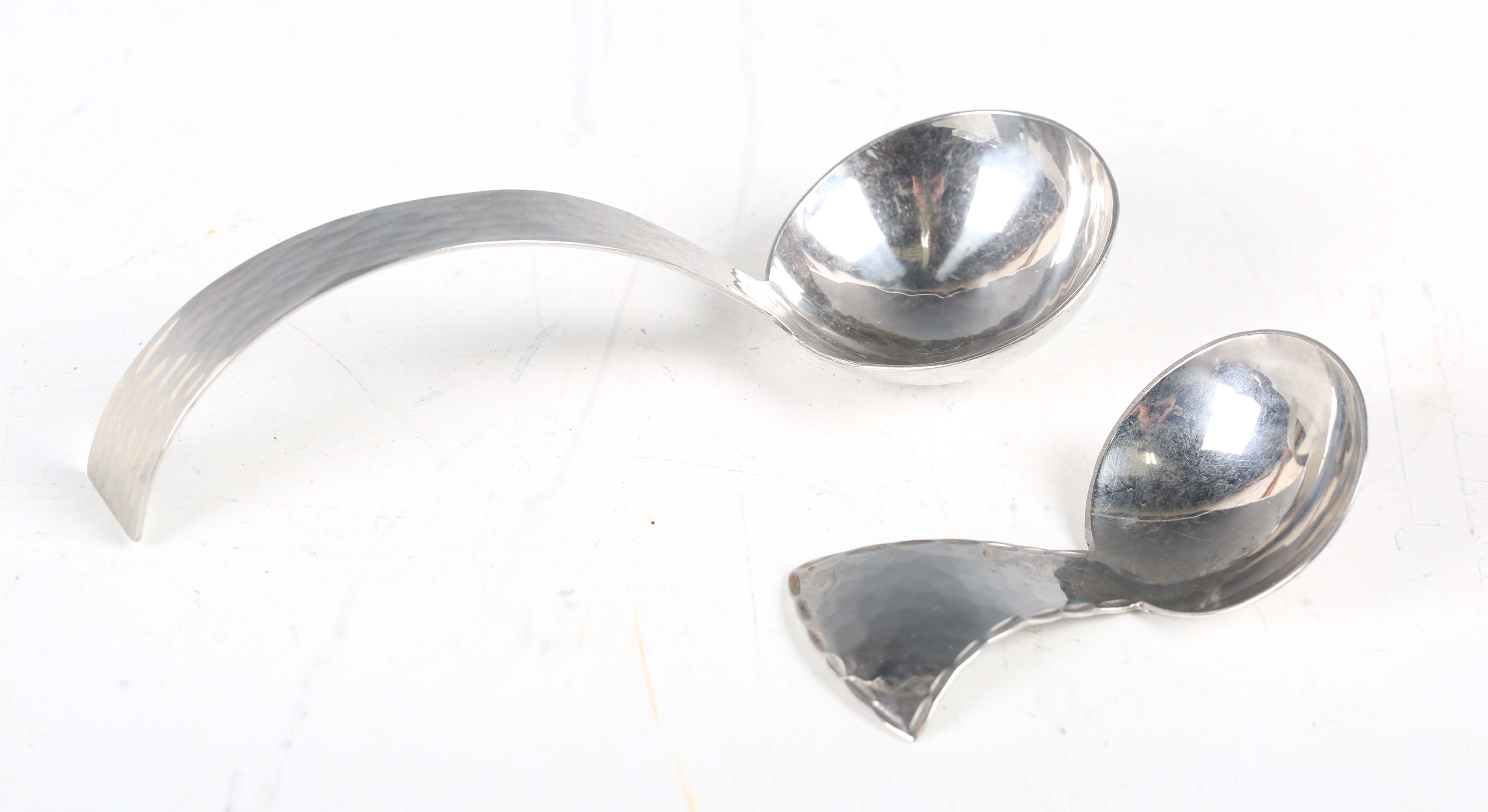 A Keswick School of Industrial Arts 'Staybrite' caddy spoon, length 6.8cm, together with a similar ladle, length 12cm.