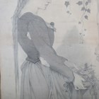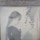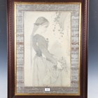 After Jean-Baptiste Bertrand - an early 20th century pencil drawing of Marguerite, a character from Goethe's Faust, signed 'H.W. Eckett', 54cm x 34cm, framed.