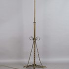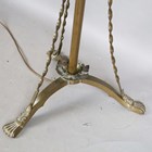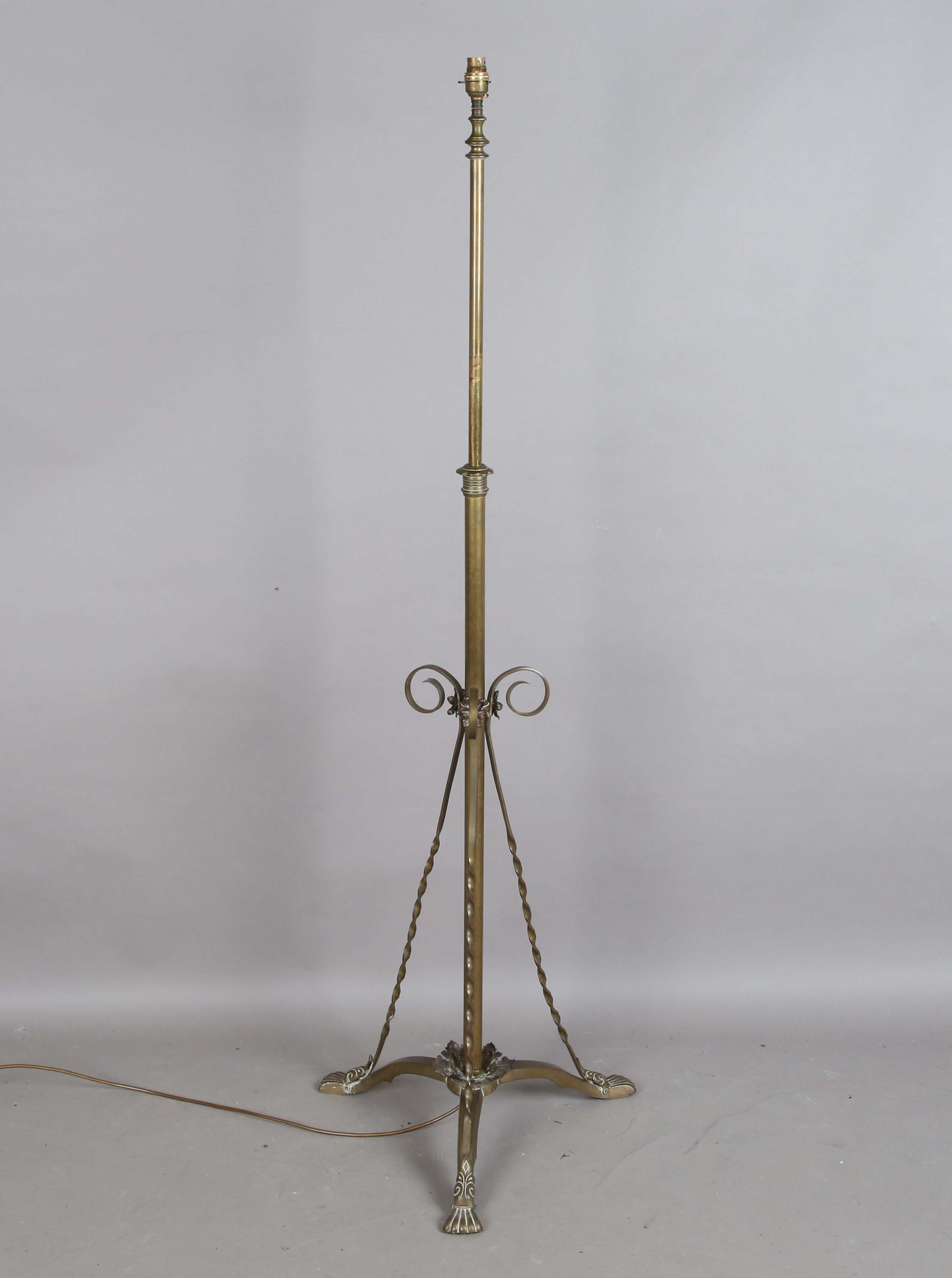 A late Victorian Aesthetic Movement brass telescopic lamp standard, in the manner of W.A.S. Benson, lowest height 124cm, extended height 157cm.
