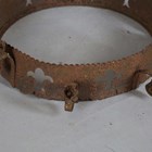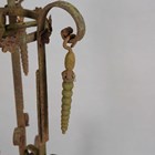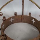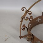 A 19th century Gothic Revival wrought iron hanging chandelier, hung with pendant drops above a pierced circlet, height 81cm.