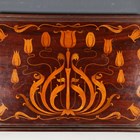 An Edwardian Arts and Crafts/Art Nouveau mahogany and marquetry inlaid tea tray, probably by Shapland & Petter of Barnstaple, width 67cm.