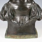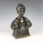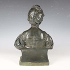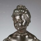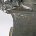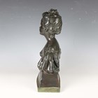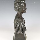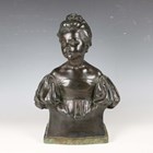 Alfred Drury (1856-1944) - an early 20th century green patinated cast plaster bust of a young girl, bearing cast signature to reverse, raised on a painted faux marble base, height 40.5cm.