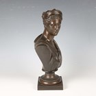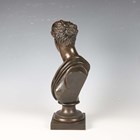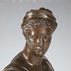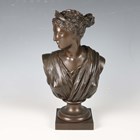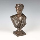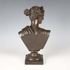 A late 19th century Continental Grand Tour brown patinated cast bronze head and shoulders bust of Diana, raised on a socle base, height 33.5cm.