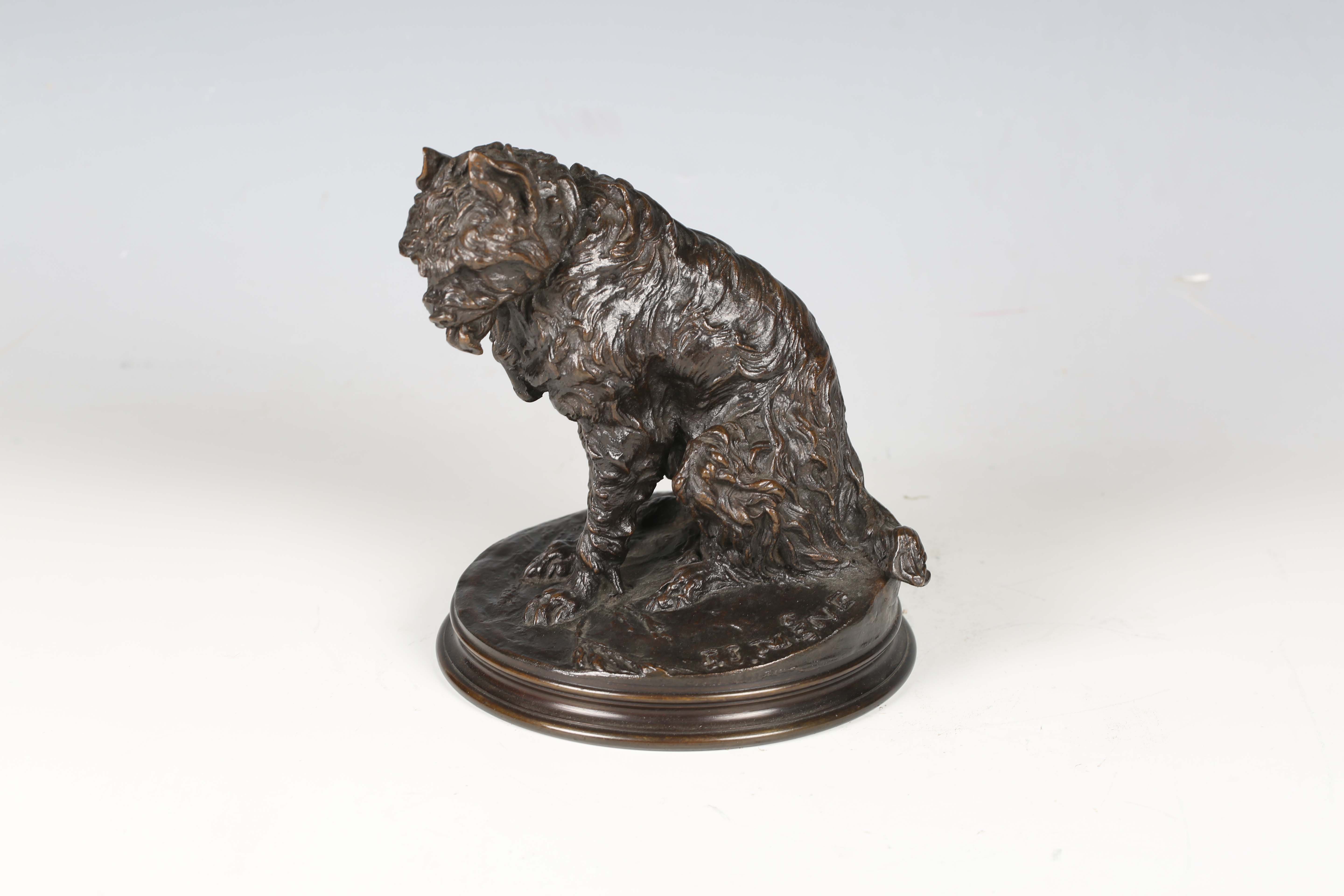 Pierre-Jules Mêne - a 19th century French brown patinated cast bronze model of a seated griffon dog, bearing cast signature, height 16.5cm.