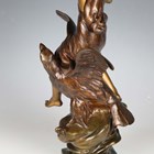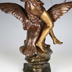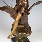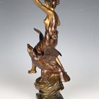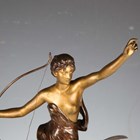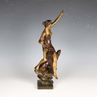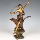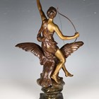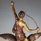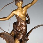 Henri Levasseur - a late 19th century French gilt and brown patinated cast bronze figure of a classical goddess seated upon an eagle and holding a bow, the base cast with a star and bearing cast signature, height 47cm.