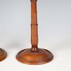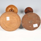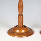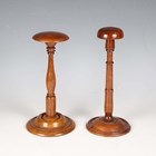An early 20th century walnut wig or bonnet stand, height 24cm, together with another similar stand, height 26cm.