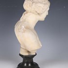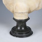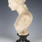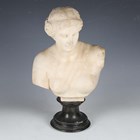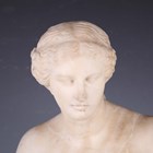 After the antique - a 19th century Grand Tour carved alabaster head and shoulders bust of the Venus de Milo, bearing incised title and raised on a granite socle, height 42cm.