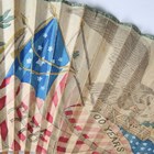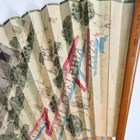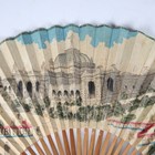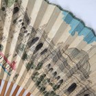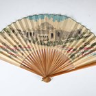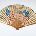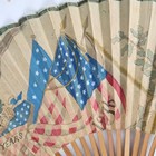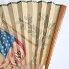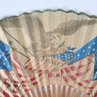 An American Philadelphia Exhibition International hand-coloured and printed fan, commemorating the 100th anniversary of the signing of the Declaration of Independence in 1876, one wooden guard stamped 'patented May 4th 1876', length 28cm.